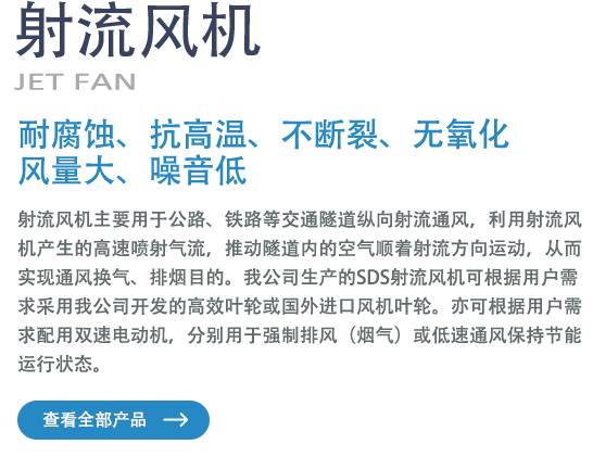 成功研發和引進了SDF型隧道節能風機和SDS型隧道射流風機,有超長的送風距離、良好的節能效果。